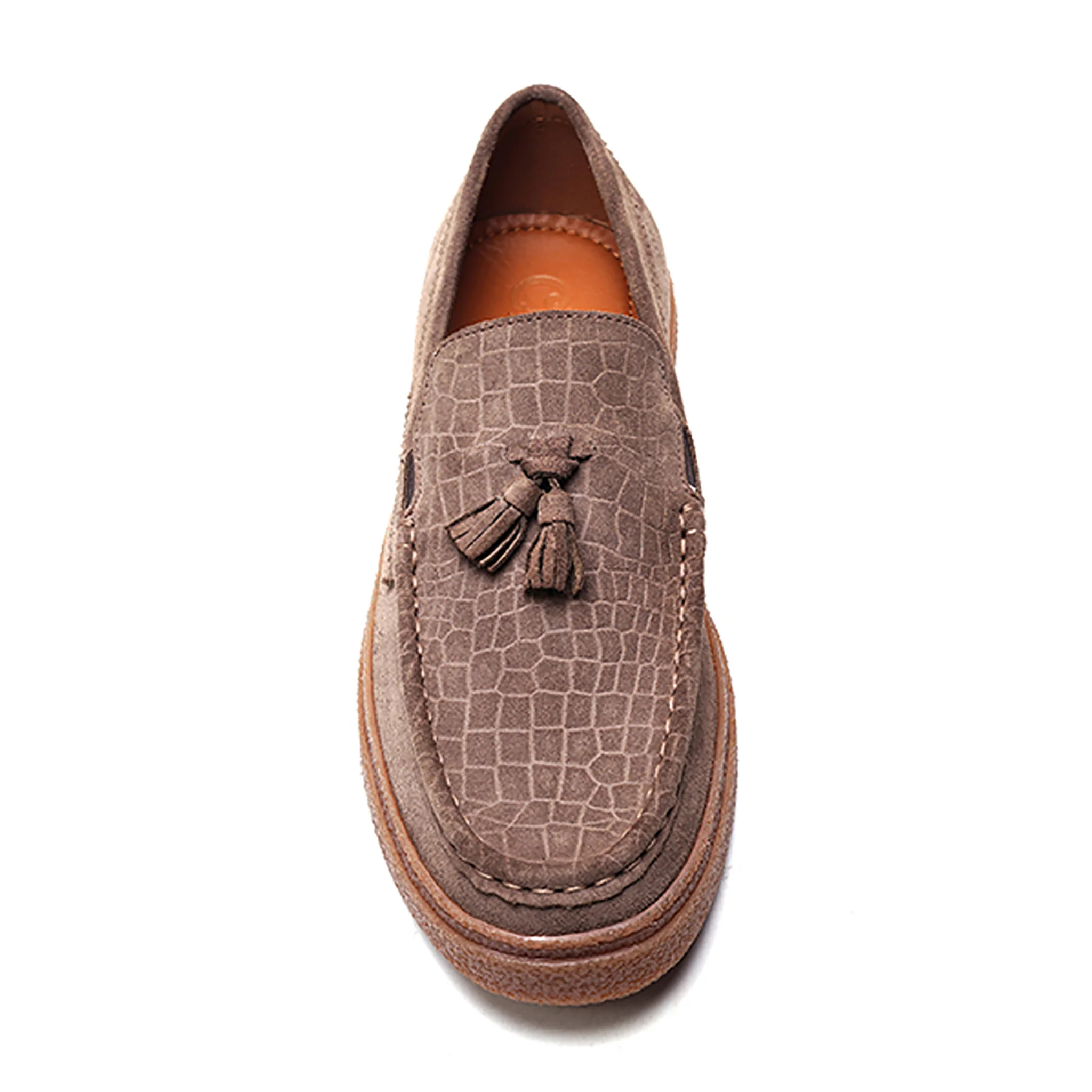 The BAEZ Tassel Loafer showcases sophistication through distinctive detailing, including calfskin suede craftsmanship and classic tassel embellishments.