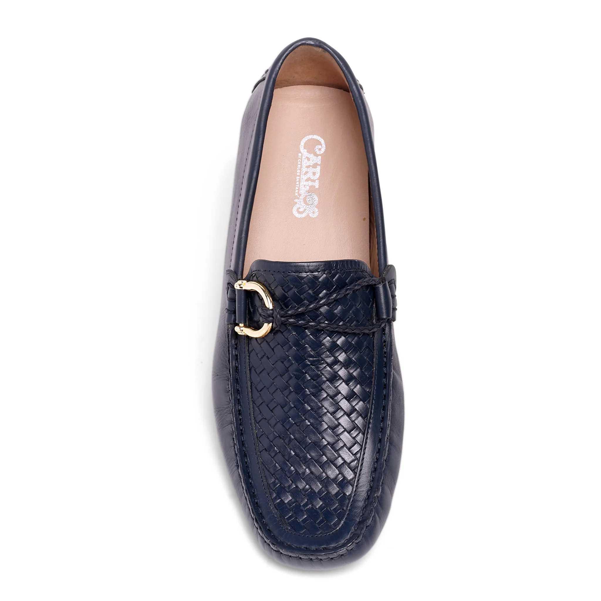 The Malone Driver Loafer is characterized by its leisurely look of luxury. Slip into its perfectly polished interweaved calfskin leather upper with a gold hardware accent, while strutting in smooth style and comfort thanks to its lightly cushioned footbed. Studded rubber outsole keeps you firmly grounded with its secure grip. Wear casually with jeans, khaki pants or shorts, while cruising down the road to high fashion.